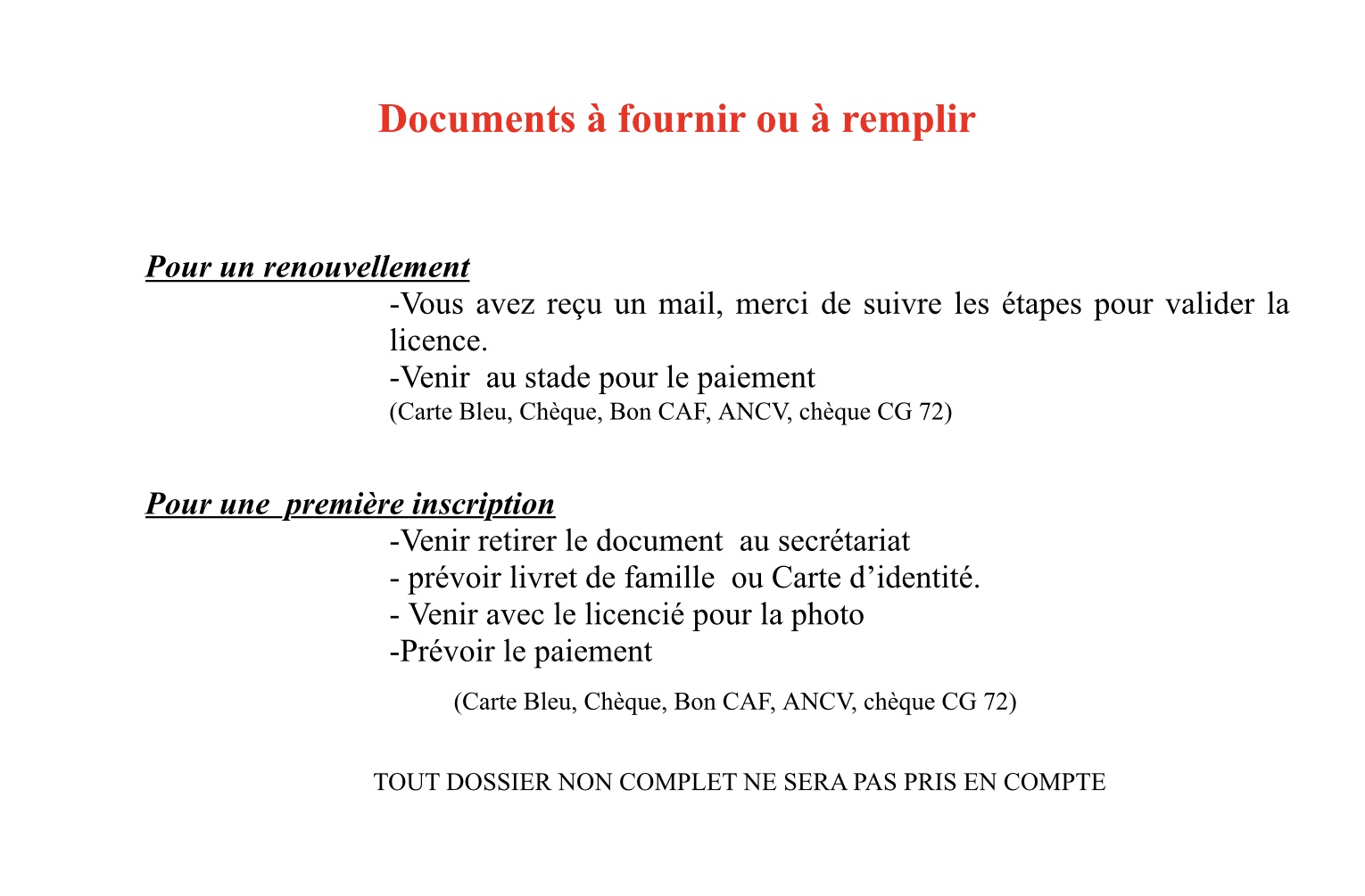 Documents pour licences
