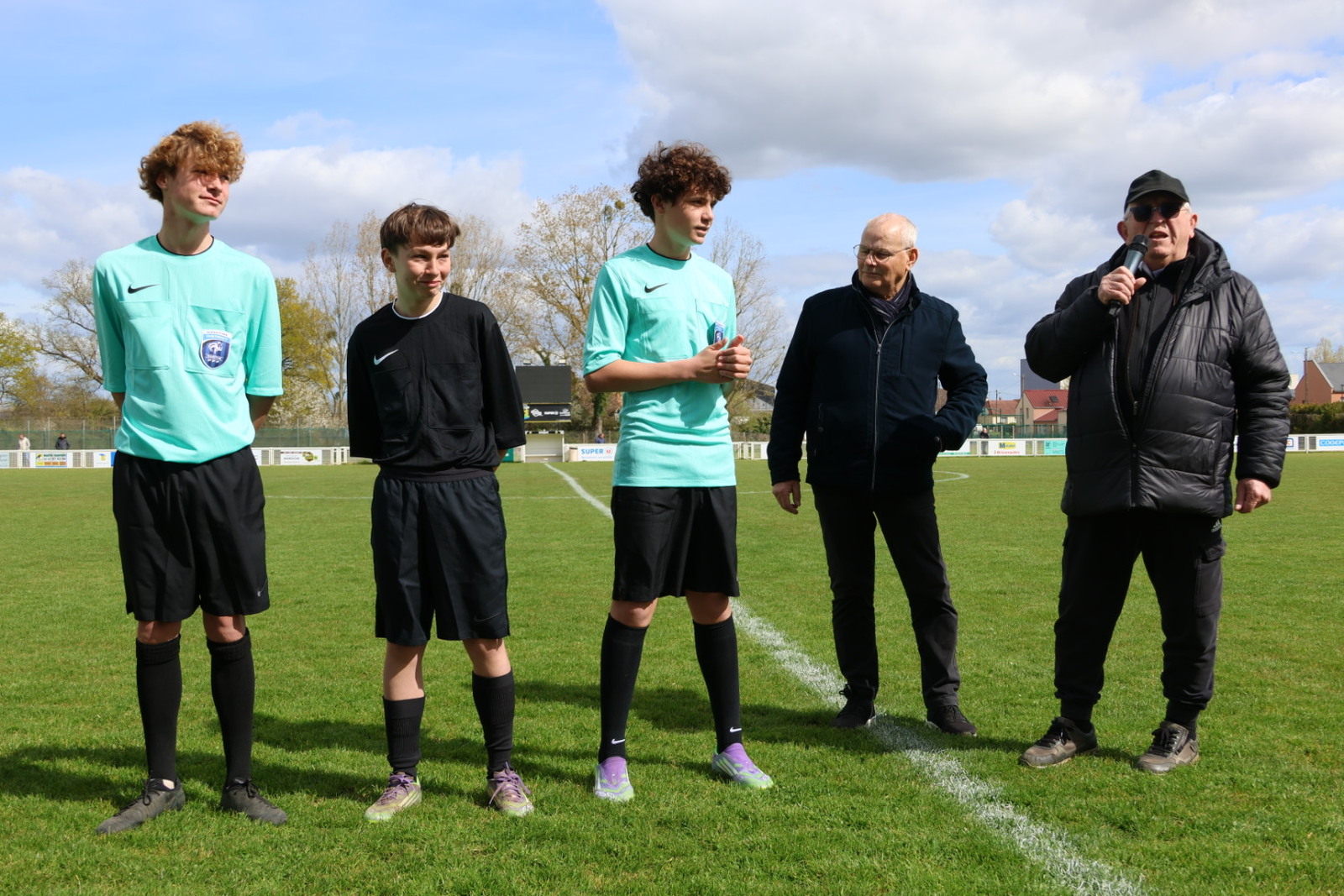 nos trois jeunes arbitres reçu à l’examen ont été présenté aux joueurs et au public