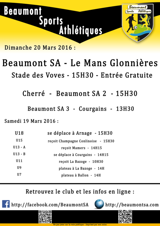 Agenda Sportif 19/20 Mars 2016
