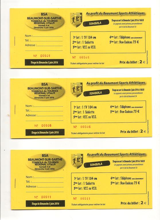Les tickets sont disponibles auprès des dirigeants.
