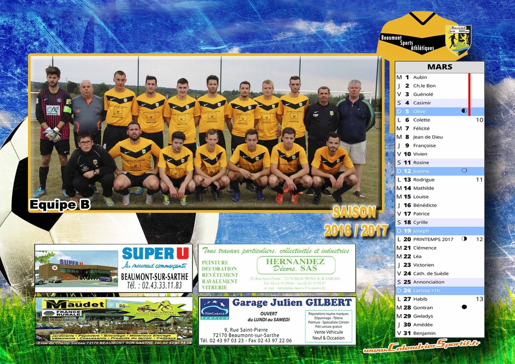 Calendriers des équipes