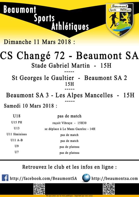 Agenda Sportif : 10/11 Mars 2018