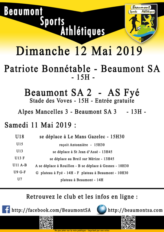 Agenda Sportif : 11/12 Mai 2019