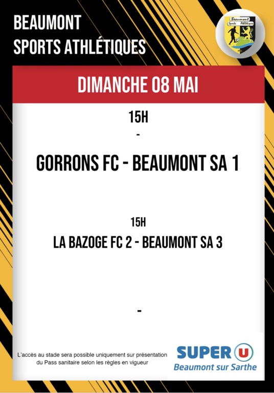 À noter samedi 7 mai 2022 à 13H30 au stade des Voves, les deux équipes U13 du BSA joueront respectivement contre Bocage Manceau et Mamers.