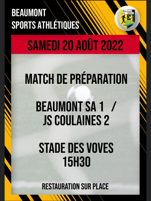 3 ème match de préparation pour l'équipe 1 contre JS Coulaines samedi 20 août 2022 à 15H30 au stade des Voves.