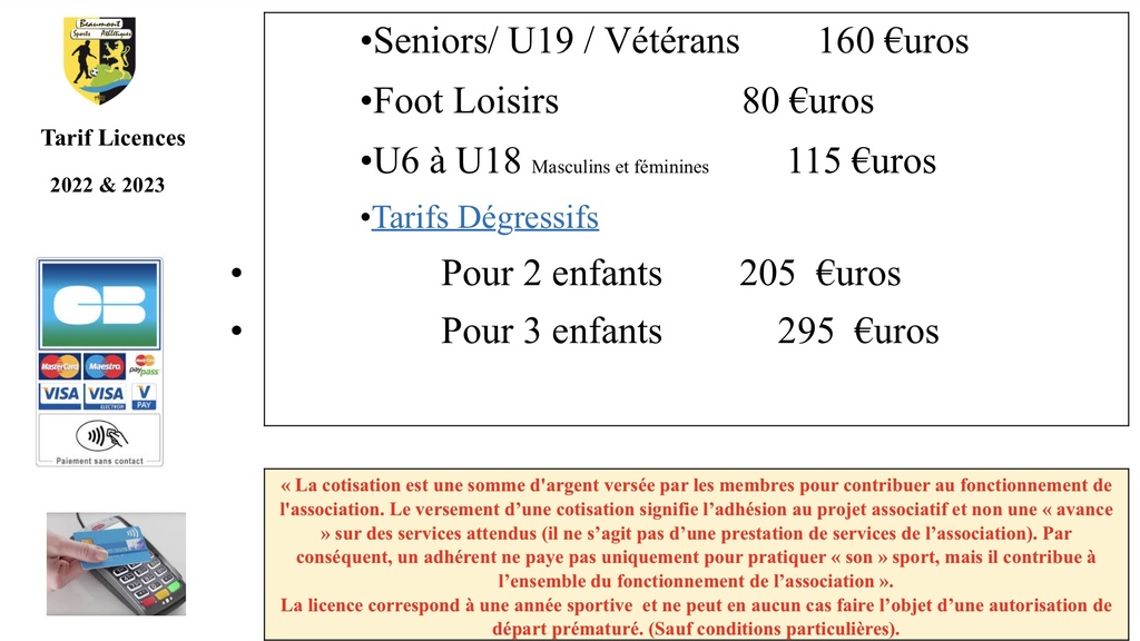 Tarif des licences saison 2022/2023 inchangé