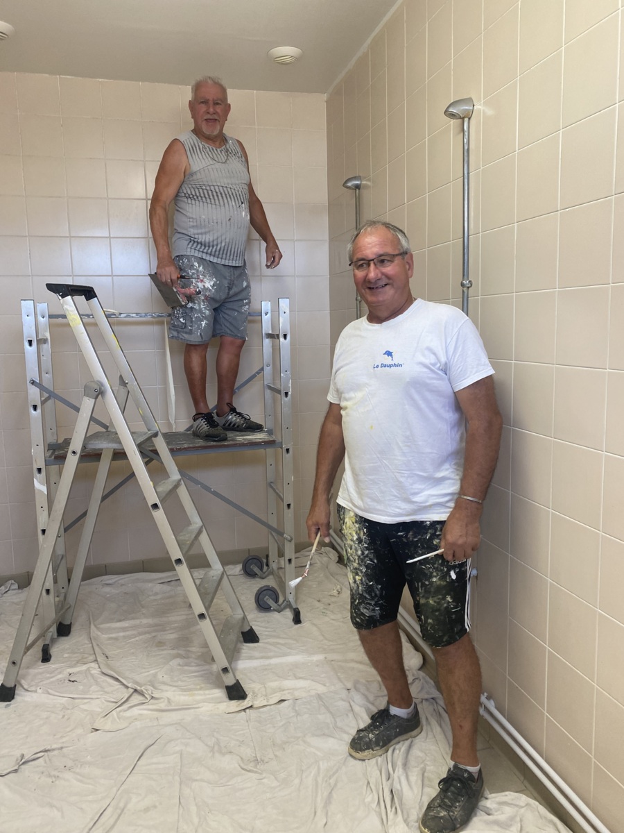 Depuis une semaine, nos deux Éric se sont investis dans la réfection des vestiaires et douches du Beaumont SA.