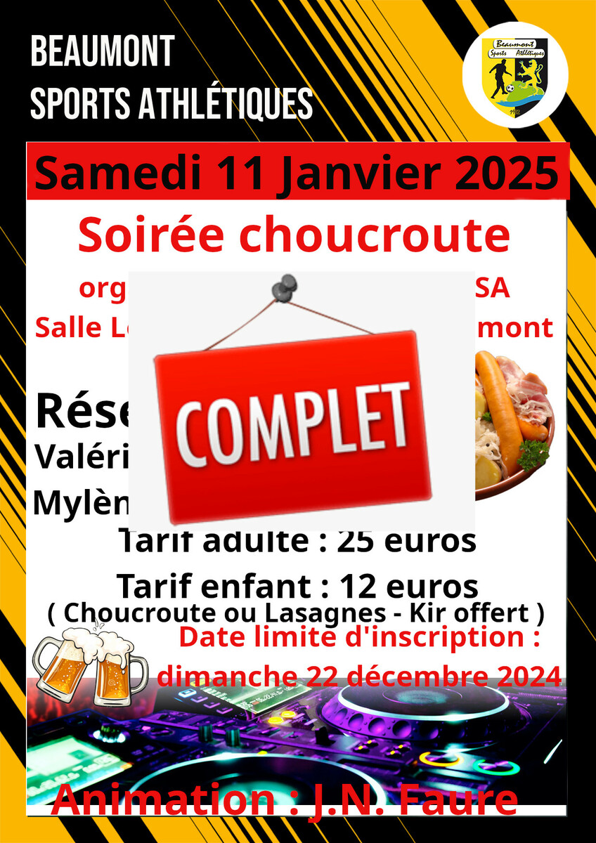 Les inscriptions pour la soirée choucroute sont closes.