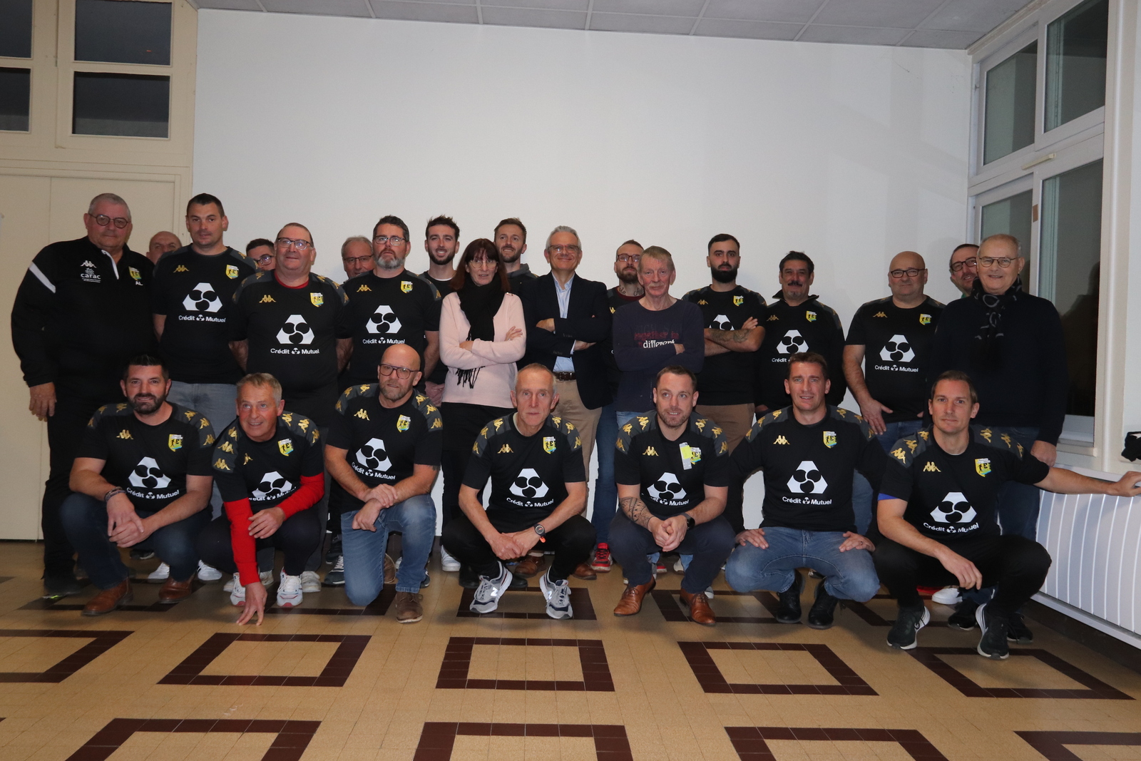 Ce mardi 10 décembre à 19H, une remise d'équipements à tous nos éducateurs à été effectué en présence du directeur de la caisse du Crédit Mutuel de Beaumont-sur-Sarthe Mr Bellanger Sylvain ainsi que deux administrateurs de la Caisse.