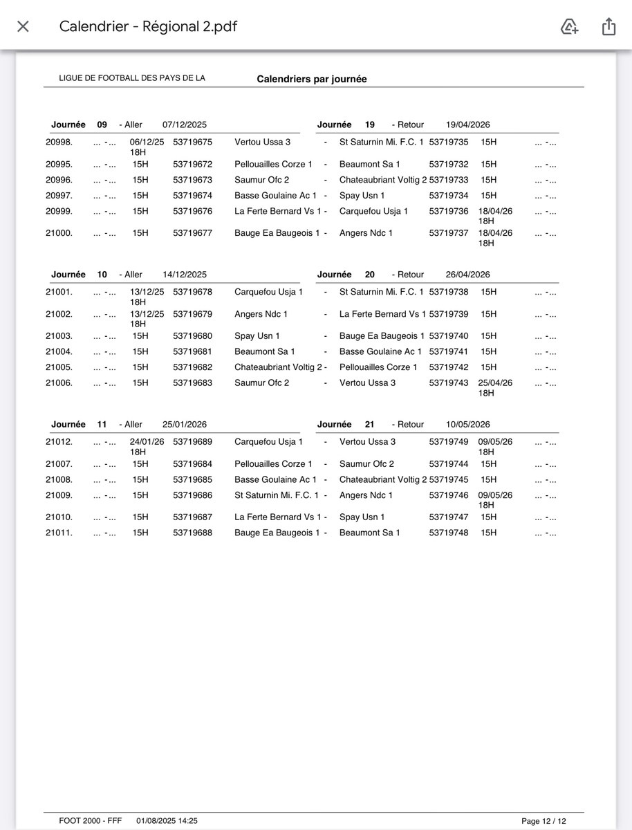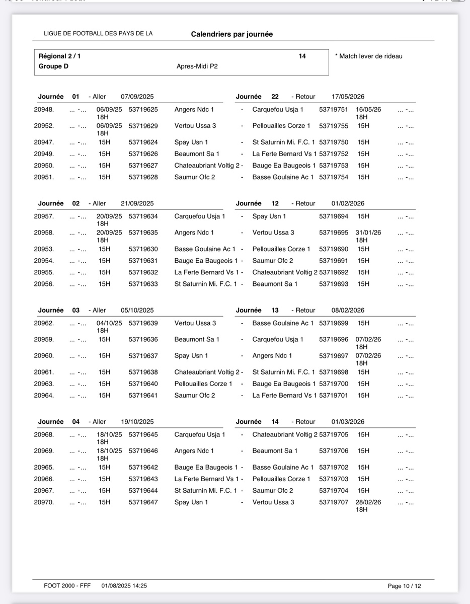 Photos associées : Calendrier matchs de R2