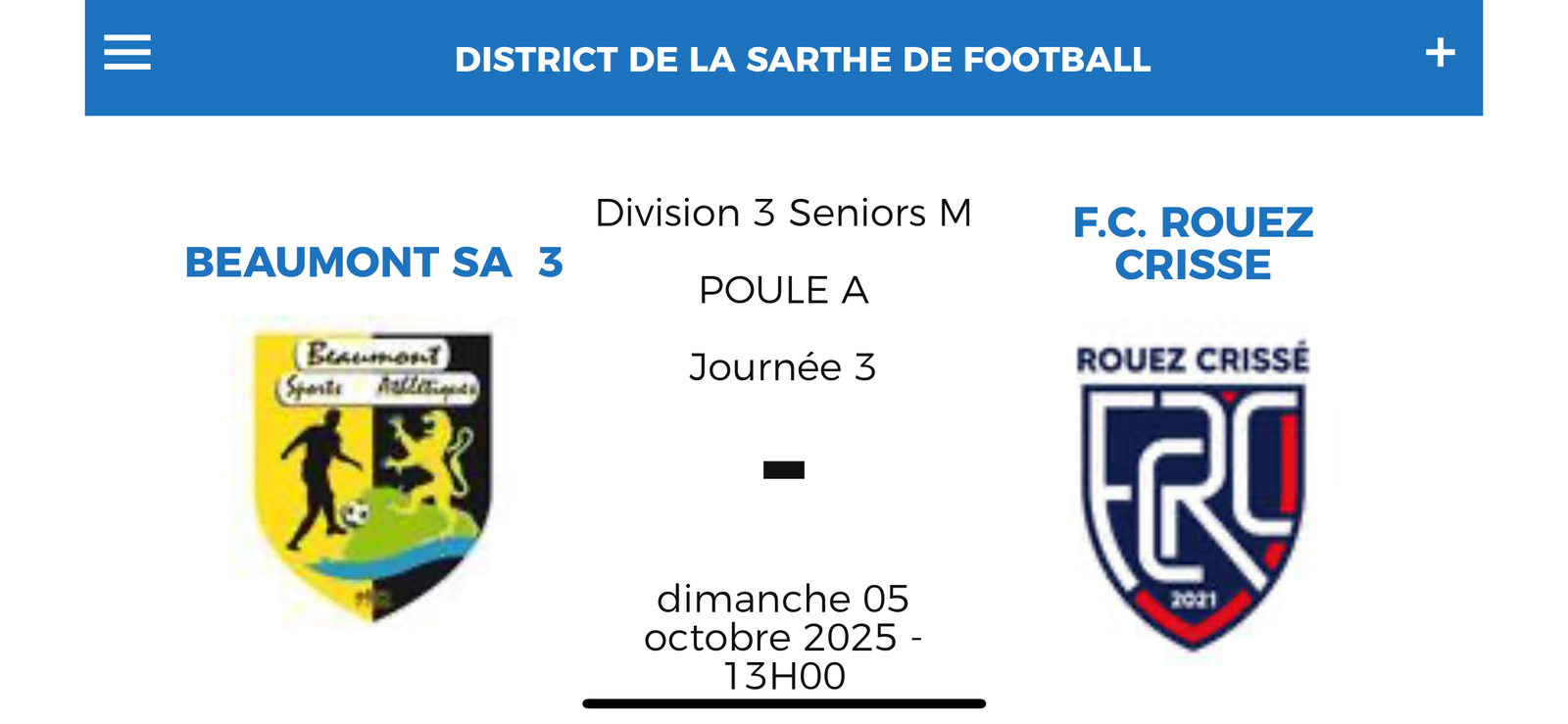 Équipe C reçoit Rouez Crissé à 13H dimanche